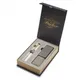 Представляем эксклюзивный подарочный набор, созданный для истинных ценителей роскоши и стиля. В его основе – элегантная ручка Parker 5th Ingenuity Slim F501, воплощающая в себе безупречное мастерство и безупречный вкус. Корпус, выполненный из нержавеющей стали, элегантно покрыт белым жемчужным лаком, а блестящие детали выполнены из розового золота – подчеркивают ее изысканность и статус.